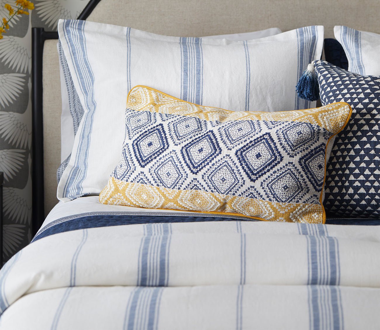 - Create a curated look with layered tones and textures by adding the Jayson Blue Stripe Linen Cashmere Duvet Cover