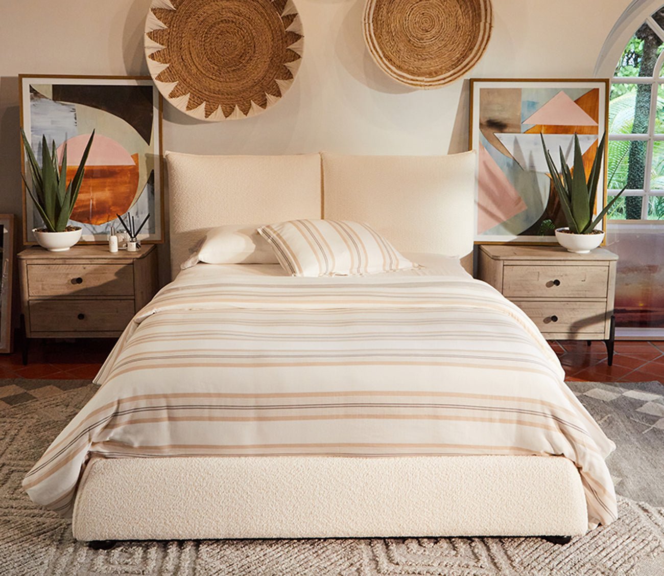 Woven by hand with 100-percent polyester yarns derived from recycled plastic bottles, this geometric abstract area rug features a low woven design with diamond-shaped patterning and angular lines for a modern feel with tribal-inspired motifs. The perfect choice for medium-traffic spaces— use this high-quality rug either indoors or outdoors with a rug pad beneath.