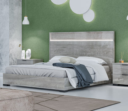 Instantly elevate your bedroom with the ultra-modern style of the Odessa LED Panel Bed, available in queen or king size. Exquisitely made in Italy with a sleek silhouette, the 50-inch rectangular headboard features plug-in LED lighting across the top, creating an eye-catching look and emitting a soft glow. Including a low-profile platform bed base for durable mattress support, choose from the solid white or matte grey finish to complement your aesthetic best.