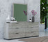 Elevate your bedroom aesthetic with the sleek sophistication of the Odessa 6-Drawer Double Dresser. Featuring a clean-lined design and a minimalist silhouette, it’s available in your choice of solid white or matte grey finishes to complement your modern decor effortlessly. Meticulously constructed and Italian-made from a blend of wood and veneer, this 67-inch wide dresser flaunts six spacious drawers that glide seamlessly, offering generous storage for clothing and essentials while maintaining a tidy, uncluttered look.