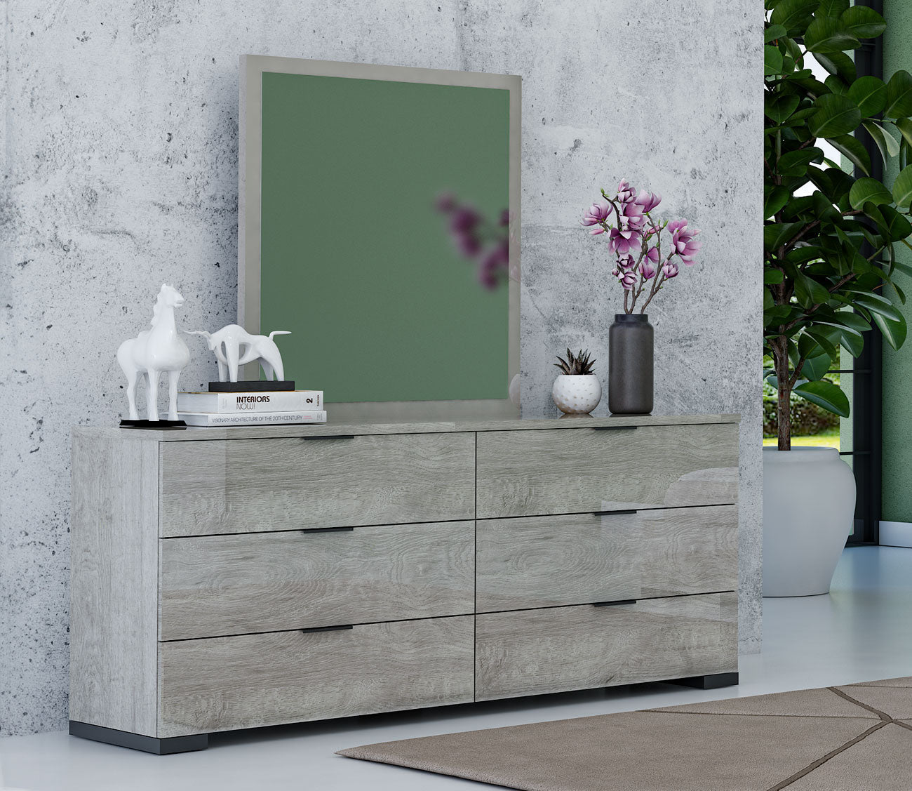 - Complete this contemporary bedroom ensemble by adding the matching Odessa 6-Drawer Double Dresser