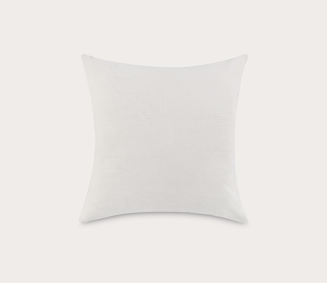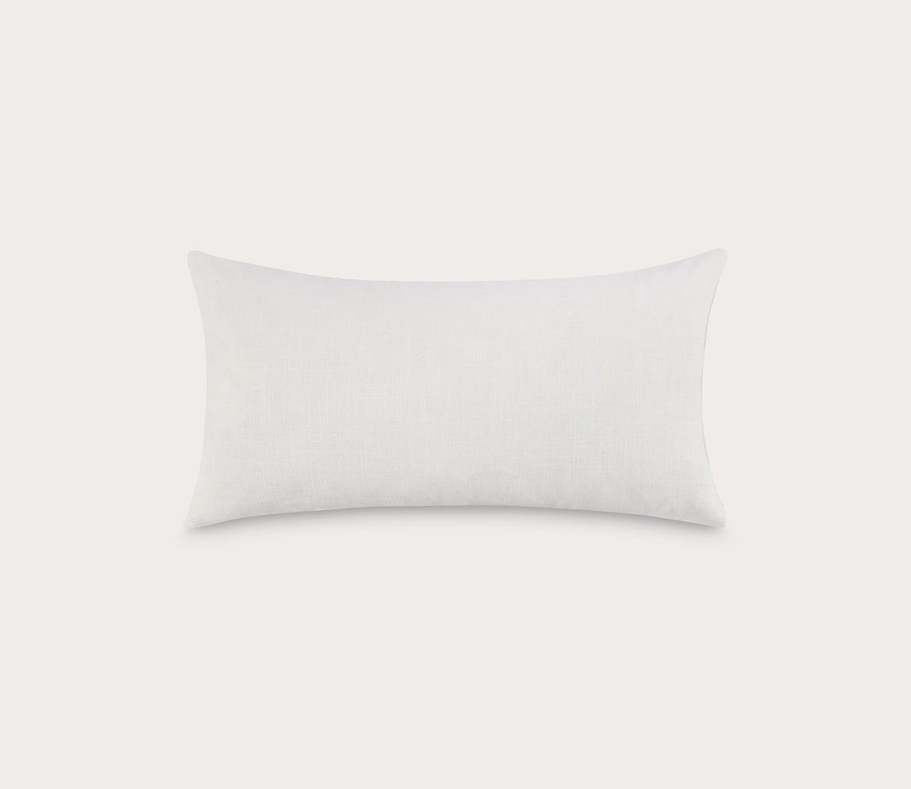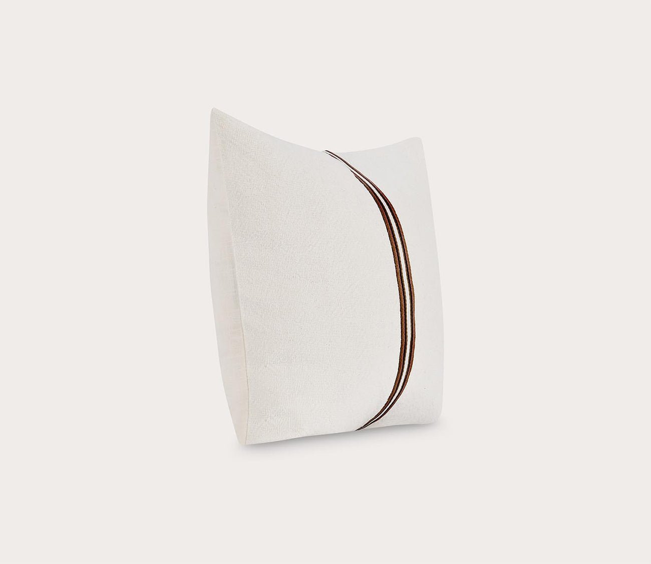 Available in a 22 x 22-inch oversized square of 14 x 26-inch lumbar size, this decorative throw pillow features a softly textured Belgian flax linen and cotton blend cover, removable with a zip closure. Polyester tape applique creates a contrast stripe design, while the included feather and down insert fills the interior with a luxurious loft.