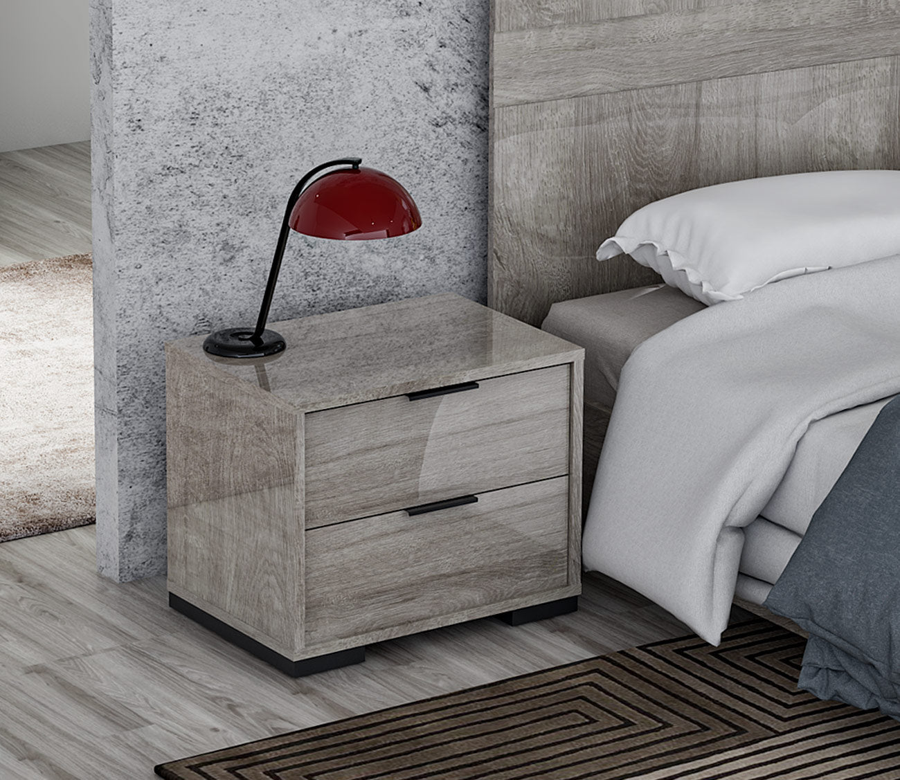 Bring modern sophistication into your space with the Rimini Grey Wood Bedroom Furniture Set.