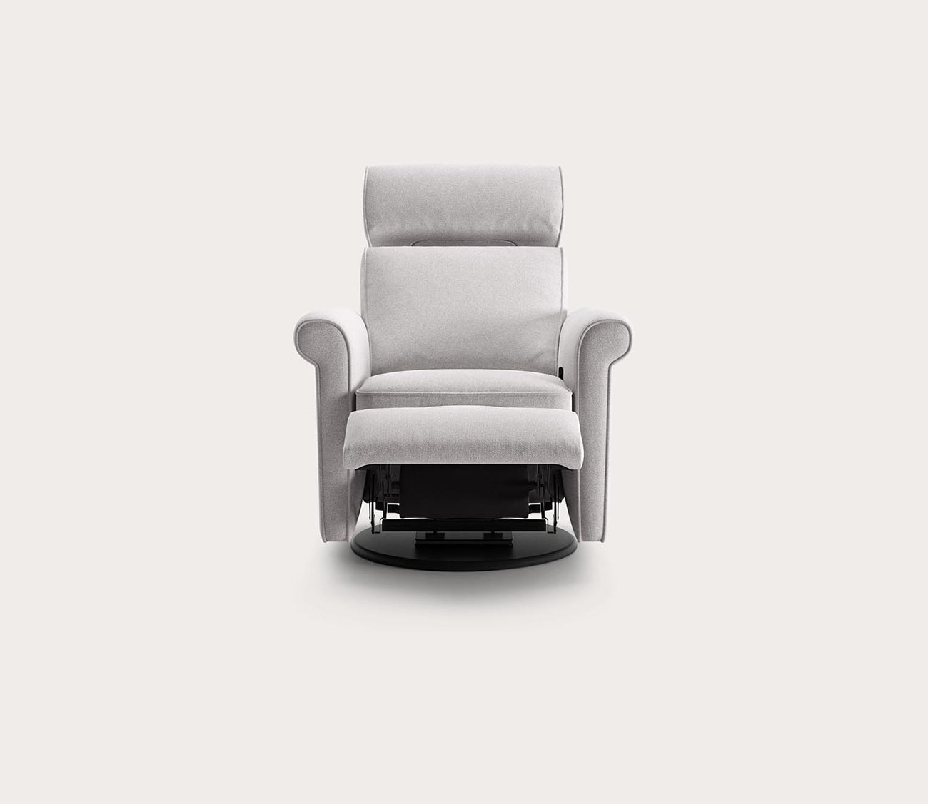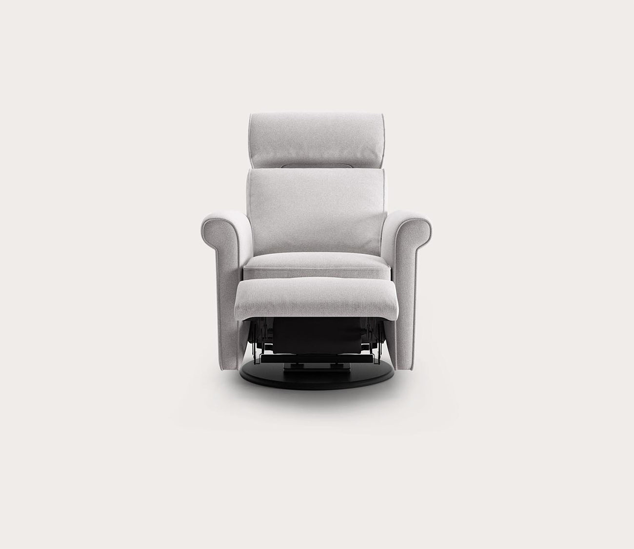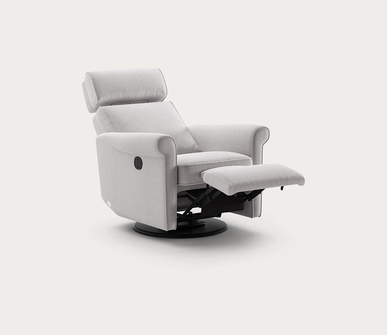 With a transitional, streamlined design and modern details, this reclining chair with a swivel glider base features high-density foam cushioning, a deep angled seat, and durable yet soft upholstery. The innovative engineering by skilled Scandinavian artisans provides customizable comfort and support with an adjustable headrest.