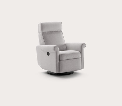 Maximize your relaxation after a long day by kicking back in Luonto’s Rolled Lounger Recliner Chair with a battery-powered electric mechanism or manual opening function. With a transitional, streamlined design and modern details, this reclining chair with a swivel glider base features high-density foam cushioning, a deep angled seat, and durable yet soft upholstery. The innovative engineering by skilled Scandinavian artisans provides customizable comfort and support with an adjustable headrest.