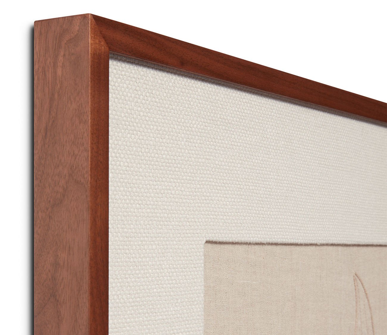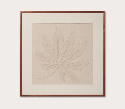 A botanical illustration brought to three-dimensional life, Loloi's Schefflera Framed Textile Wall Art demonstrates fine craftsmanship with highly intricate details. Available in a 36 x 36 or 20 x 20-inch size with a square orientation, this wall décor accent piece features an oatmeal beige base cloth embroidered with an outlined leaf motif against a neutral-hued premium mat. Finished in-house by Loloi's experts, the high-quality artwork arrives ready to hang in a brown faux wood frame for a sleek look.