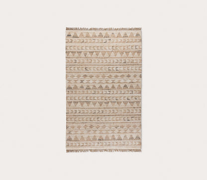 - Handwoven from jute and cotton with no backing and dyed fringe accents.