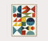 Assorted shapes and bold colors create a graphic tiled design on Grand Image’s Solar Flare Digital Fine Art Print by talented artist Andy Burgess. Combining triangles, circles, and squares into a collage-style pattern— this 36 x 28-inch wall art print makes a midcentury modern home decor statement with vintage appeal in blue, green, orange, and red hues. The high-quality artwork on archival paper arrives complete and ready to hang in an oak wood frame under protective glass.