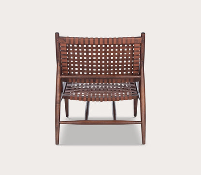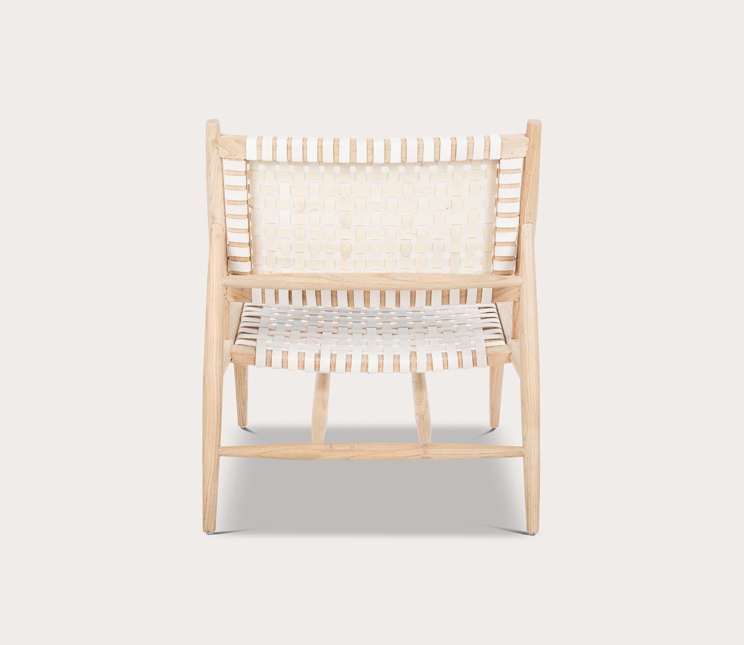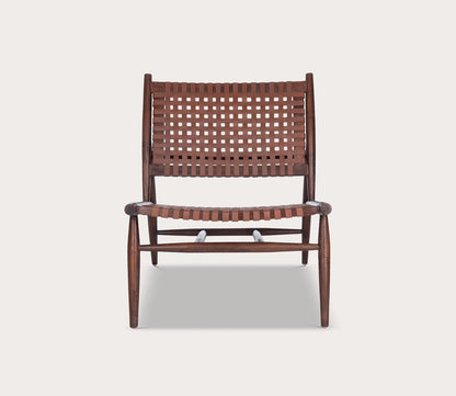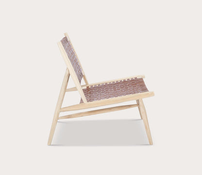 Pull a seat up to coastal contemporary style with Safavieh’s Soleil Accent Chair— a laidback take on sleek Scandinavian style. A new design update on a classic silhouette, this armless lounge chair features exquisite craftsmanship with a stunning wood frame in a natural, brown, or cognac finish. Complementing the clean, elegant lines, low-slung seat, and reclined back, the genuine cowhide leather interlaced panels create a breezy, woven look.