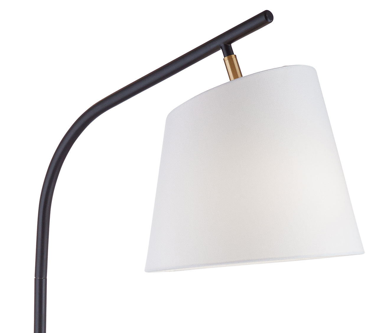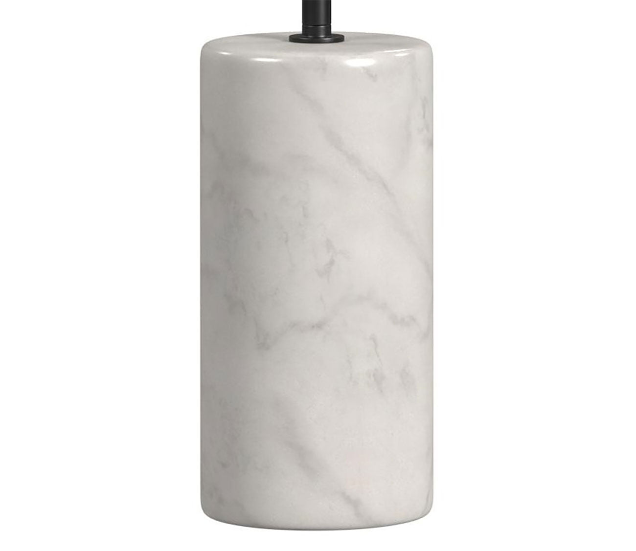 With uniquely handcrafted details produced by a skilled artist, this decorative floor lamp flaunts a slender metal body that leads to an arched curve of the neck, all in a sleek black finish. Anchored by a thick white marble stone base— the angular white shade evenly diffuses the light, making it the perfect addition beside a sofa, reading chair, or desk.