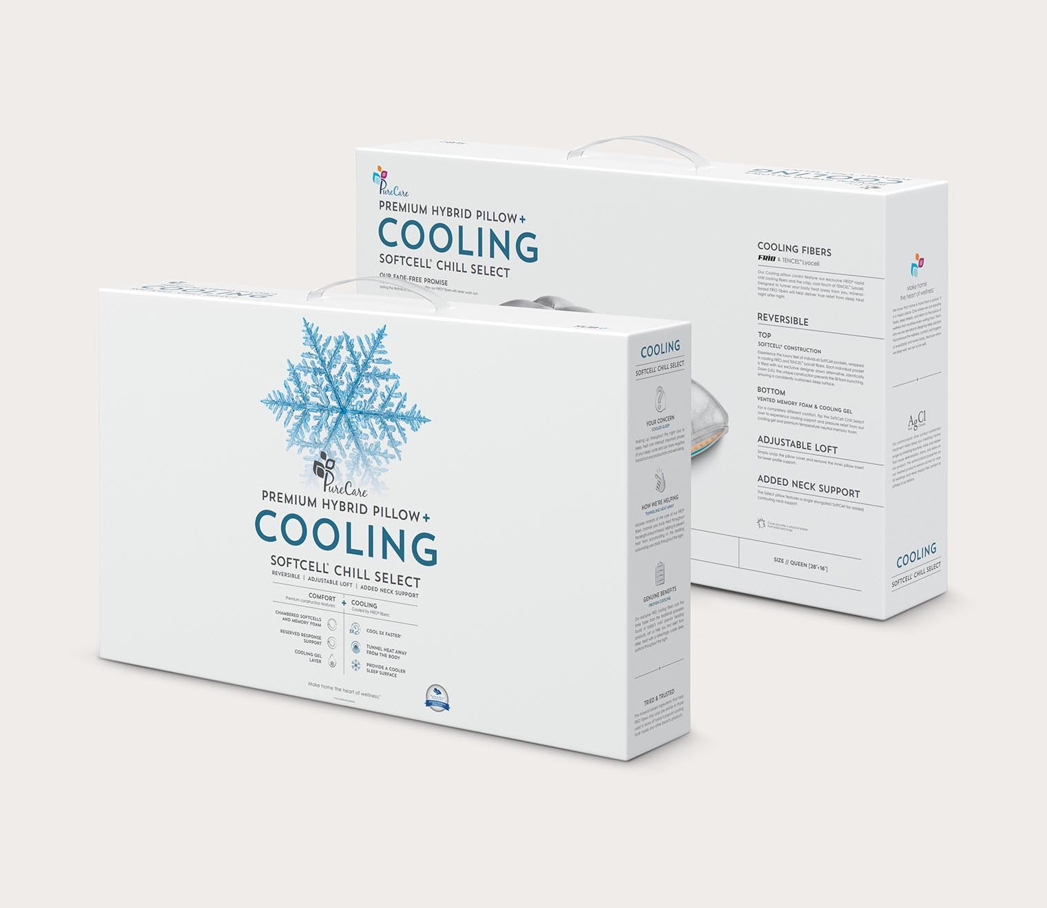 Experience cloud-like comfort and cool-to-the-touch support with Pure Care’s cooling gel and memory foam hybrid pillow from the SUB-0° line. Offering additional neck support, the top surface of this reversible pillow features an elongated cell at the designer down alternative pockets. The opposite side refreshes and relieves with responsive cooling gel and memory foam. With adjustability, raise or reduce the loft by removing the Identically Down™ insert at the center. Created with the cooling benefits of technical textile, Frio, the cover rapidly chills, while resisting allergens with MiteTight™ seams and antimicrobial treatment.
