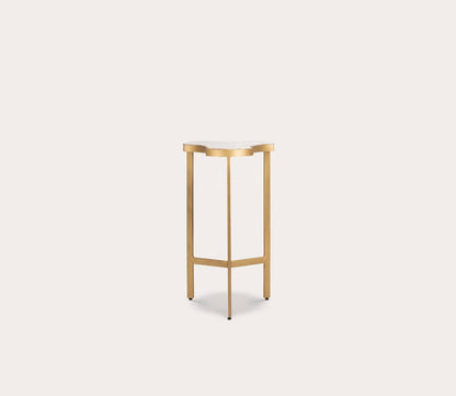 Give your living area a creative touch by decorating with the high-end allure of Safavieh’s Suki Tripod Accent Table, featuring a space-saving 13-inch width and 23-inch height. Built on a sleek gold-finished metal base with a tripod design, this decorative side table makes a glamorous addition to contemporary rooms. The sliced white agate stone tabletop completes the look with organic luxury and a unique cut-in shape.