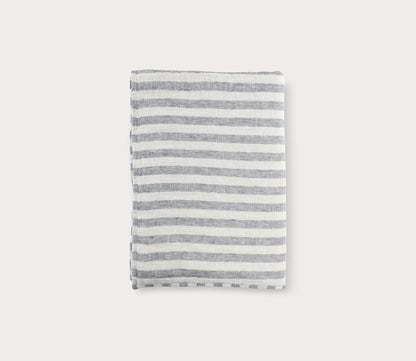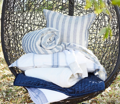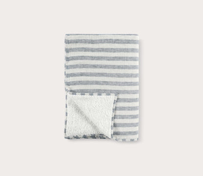- Blue linen stripe throw blanket with sherpa backing