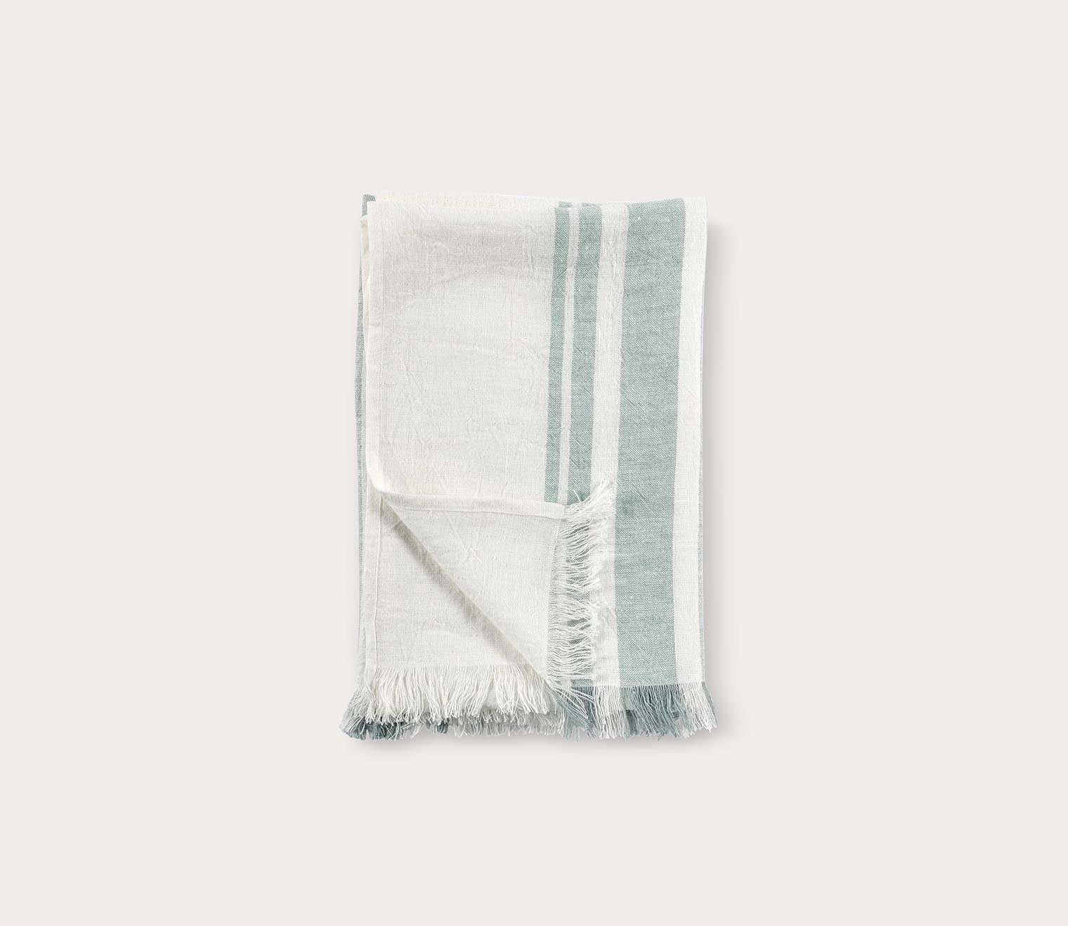 Invite lightweight warmth and natural texture into your ensemble with Villa Home’s Portola Eucalyptus Throw Blanket. Available in a 50 x 70-inch size that drapes and layers well over your bed, sofa, or favorite chair, this 100-percent Belgian flax linen throw blanket showcases a woven stripe design in a soft green hue against ivory. Complementing a range of interior aesthetics from coastal modern to cottage farmhouse— the decorative self-fringe detailing adds movement to each end of the ultra-soft, breathable design.