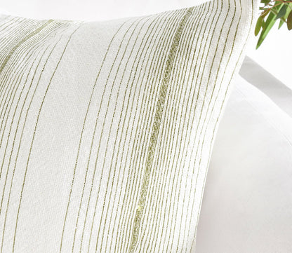 Instantly refresh your living space with the elegance and minimalism of Villa by Classic Home’s Theta Striped Throw Pillow, available in a 26 x 26-inch oversized square size. With blue or green hues over the natural ground, this decorative toss pillow features a cotton and linen blend cover with a hand-screen printed design of thin variegated stripes at the front and back. Hand-stitched embroidery adds extra texture and dimension, while the included feather and down insert fills with plush loft.