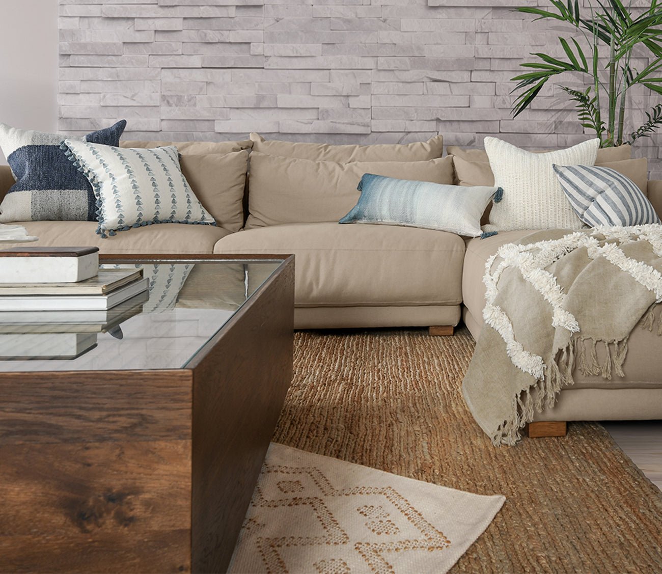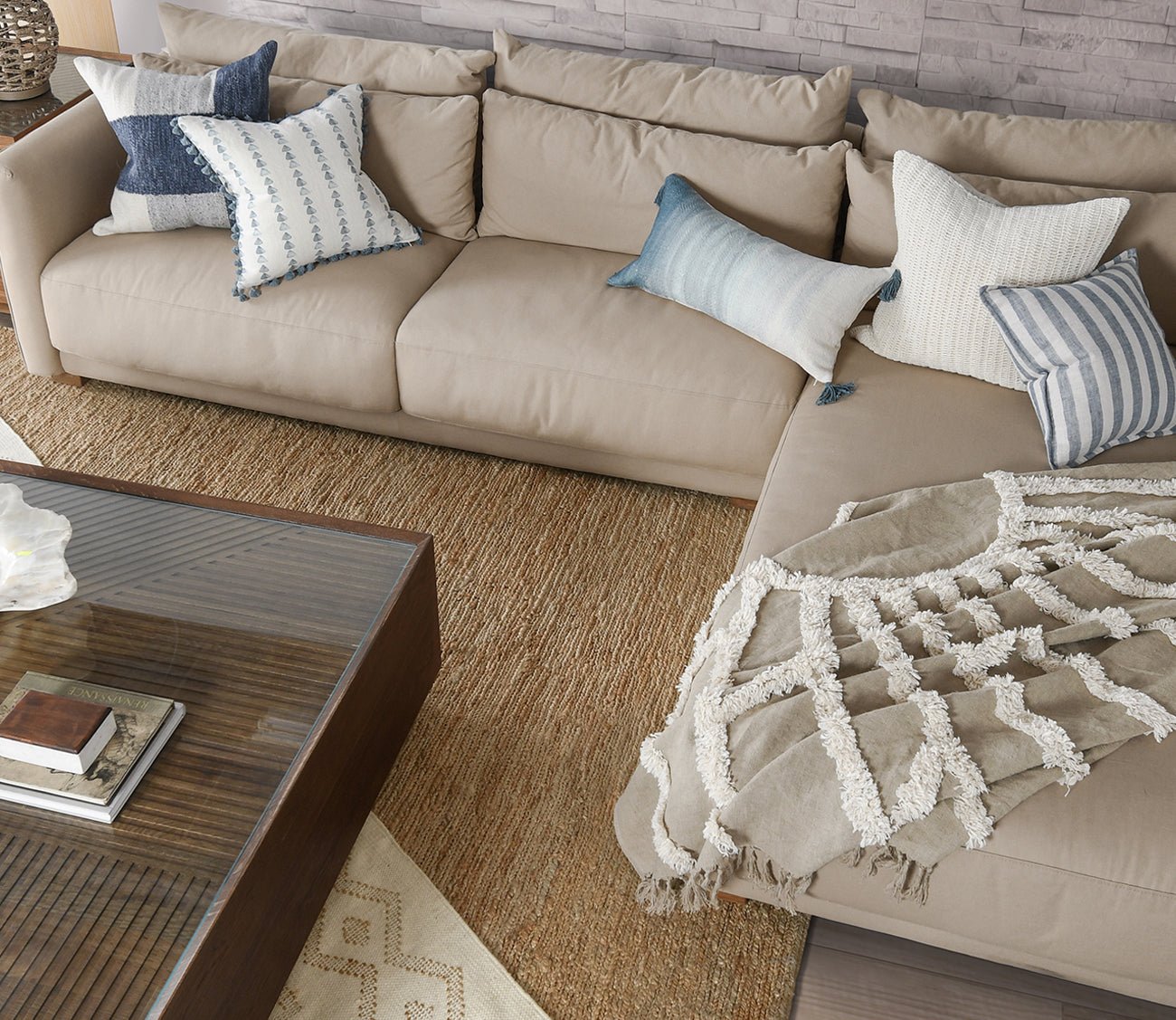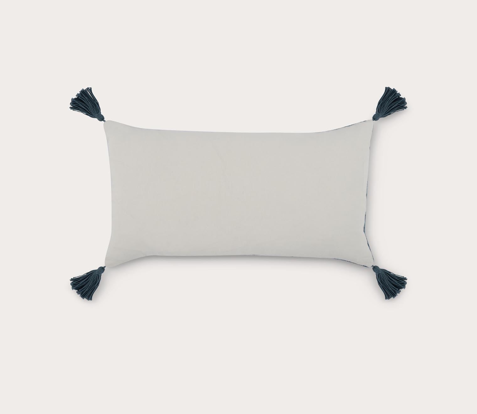 Accented by decorative tassels at each corner, this rectangular toss pillow features a linen and cotton blend cover with a watercolor digitally printed design at the face in softly fading blue shades for an ombre effect. Including a luxury feather and down insert, the cozy accent pillow creates a plush spot to lean against on the bed, chair, or sofa.