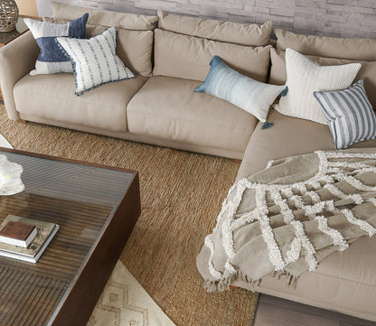 - Arrange your comfort zone for a one-of-a-kind look by styling with the Delgada Natural Blue Throw Pillow