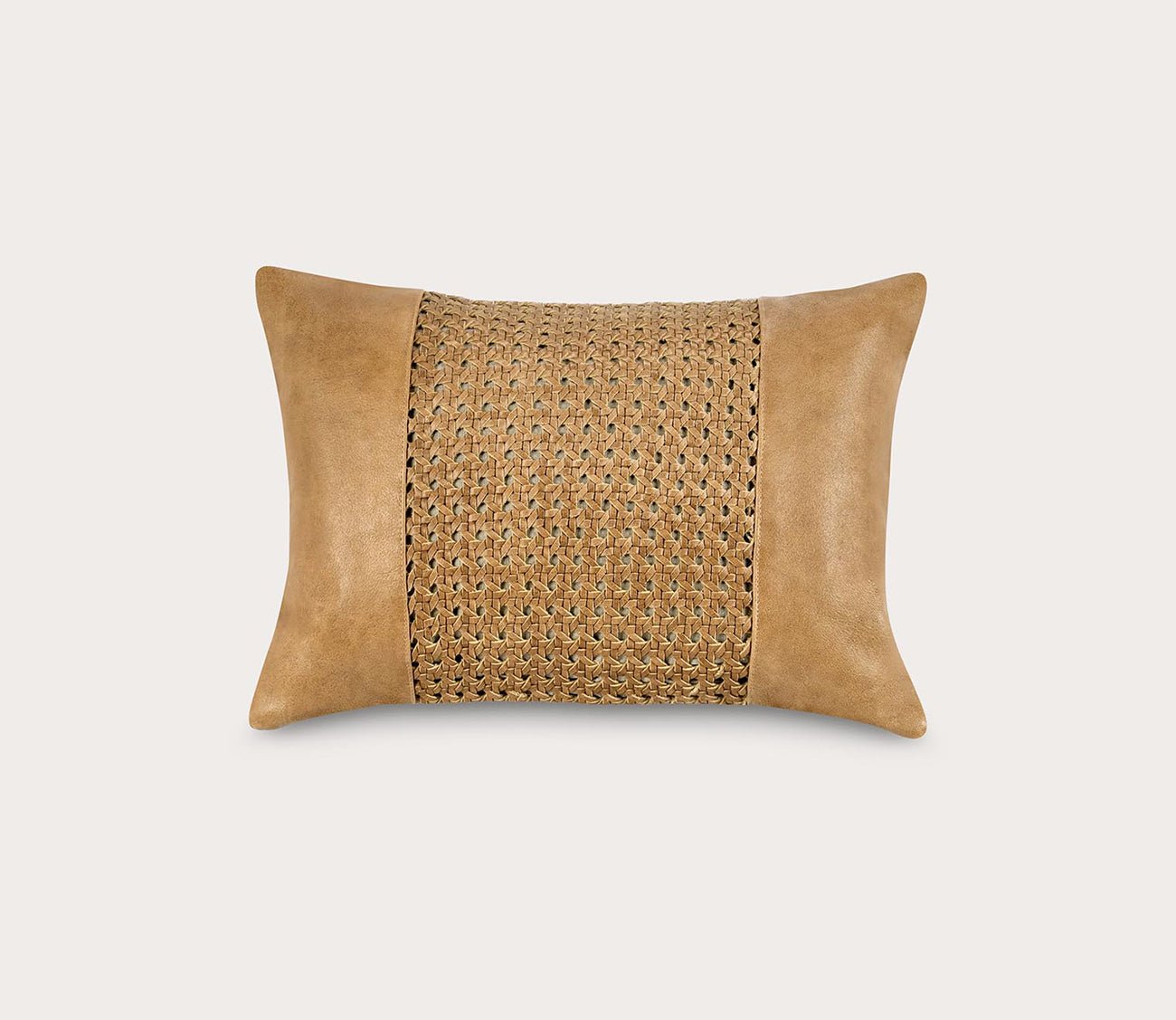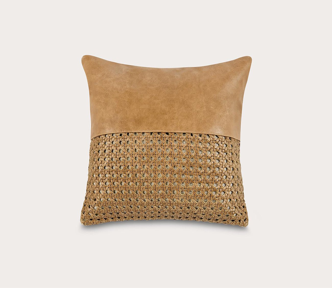 Available in a 14 x 20-inch lumbar or 18 x 18-inch square size, this decorative toss pillow features a genuine leather panel at the face with an intricate handwoven design and 100-percent cotton lining. Full of natural character in a sleek brown hue— the included feather and down insert fills with lasting loft.
