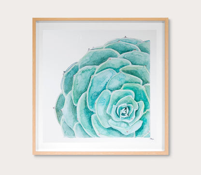 The perfect home addition for plant lovers, Grand Image’s Tropical Botanicals 9 Digital Fine Art Print infuses your space with the inherent beauty of nature. By Marie Lawyer, a gifted multimedia artist, this 23 x 23-inch wall art print on archival paper displays an up-close view of a highly detailed watercolor succulent plant in shades of green and beige against white. Framed in solid maple wood under protective glass— the mat-floated artwork is masterfully hand-deckled with delicately torn edges.