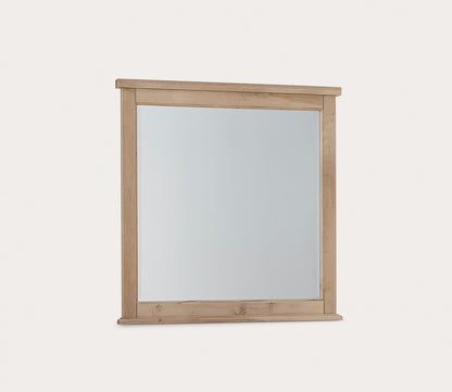 Bring your bedroom together with timeless design and modern functionality by decorating with Vaughan Bassett’s Woodbridge Landscape Mirror. The perfect pairing on top of the matching dresser or chest, this 37-inch rectangular dresser mirror with a landscape orientation features a solid wood frame in a dark cashmere or clear maple finish surrounding a beveled glass mirror center. Proudly made in the USA— the cohesive and visually striking design elements elevate your space’s décor for years to come.