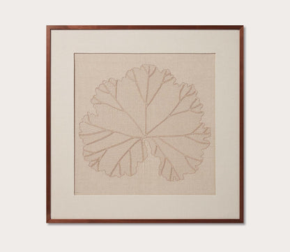 - Features an embroidered leaf on sandy beige fabric woven from textural cotton.