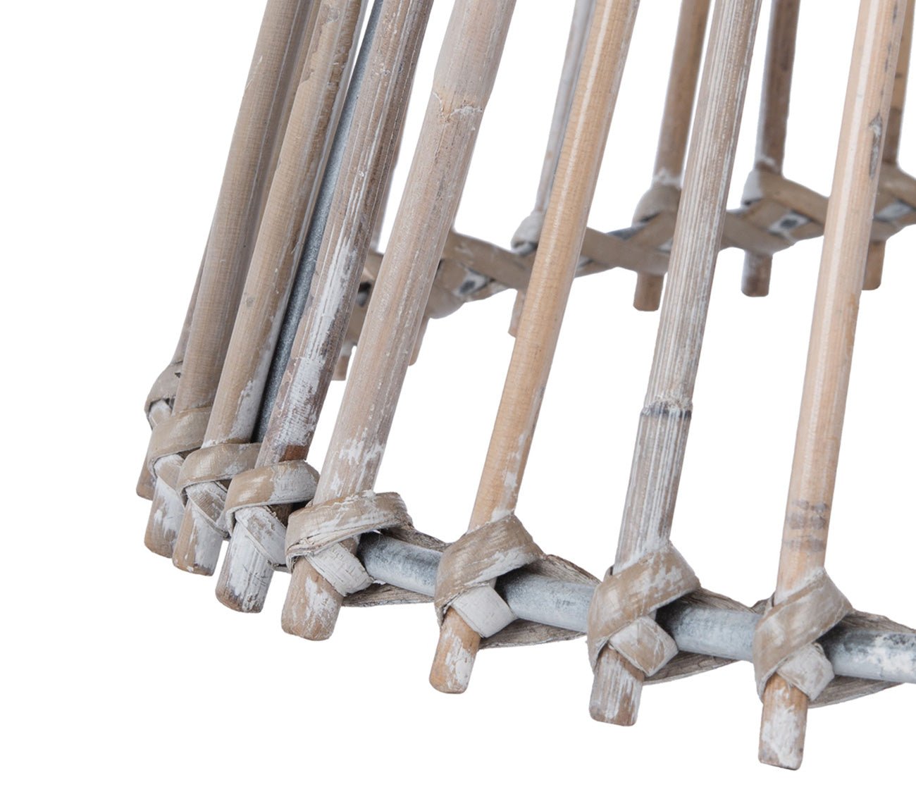 With a 20.1-inch height and 23-inch round shape, this indoor rattan side table features a smooth mango wood tabletop in your choice of a grey whitewash, honey brown wash, or natural finish. Open and airy with an hourglass, fanning silhouette— the matching Jawit or Kubu rattan base completes the look in handcrafted appeal.